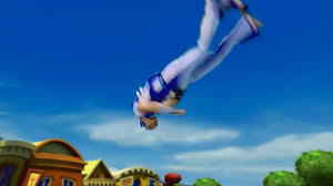 Sportacus wakes up in his airship and does some flips. He yells out “table!” and his table opens. He flips over the table, picks up an orange and throws it in the air. He then jumps and kicks it into a bowl. He then gets a cutting knife. He flips the bowl, catches it perfectly. The orange nearly falls until he catches it. He cuts the oranges into pieces and has a piece. He then accidentally steps on a button, then out comes an old picture. He smiles at it, but it is not revealed what the picture is. “Good times.” says the hero.