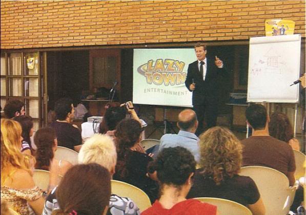 - Writer, producer, entrepreneur, comedian and a famous Icelandic athlete. He is best known as the creator and co-star of the children’s television show LazyTown, in which he plays the superhero Sportacus. Scheving was born in the capital Reykjavík, but grew up in the small town of Borgarnes. In 1992 he became the Icelandic Men’s Individual Champion in Aerobic Gymnastics. In 1993, he became the Scandinavian champion, and was the European champion twice in 1994 and 1995. He was voted Athlete of the Year by Iceland in 1994. He is the CEO, creator, and co-founder of LazyTown Entertainment. This company produces books, videos, games, and sporting goods to help promote fitness and a healthy lifestyle to children. He is also creator of the show LazyTown, where he plays Sportacus. © Jimi Perita / eyevine Contact eyevine for more information about using this image: T: +44 (0) 20 8709 8709 E: [email protected] http:///www.eyevine.com